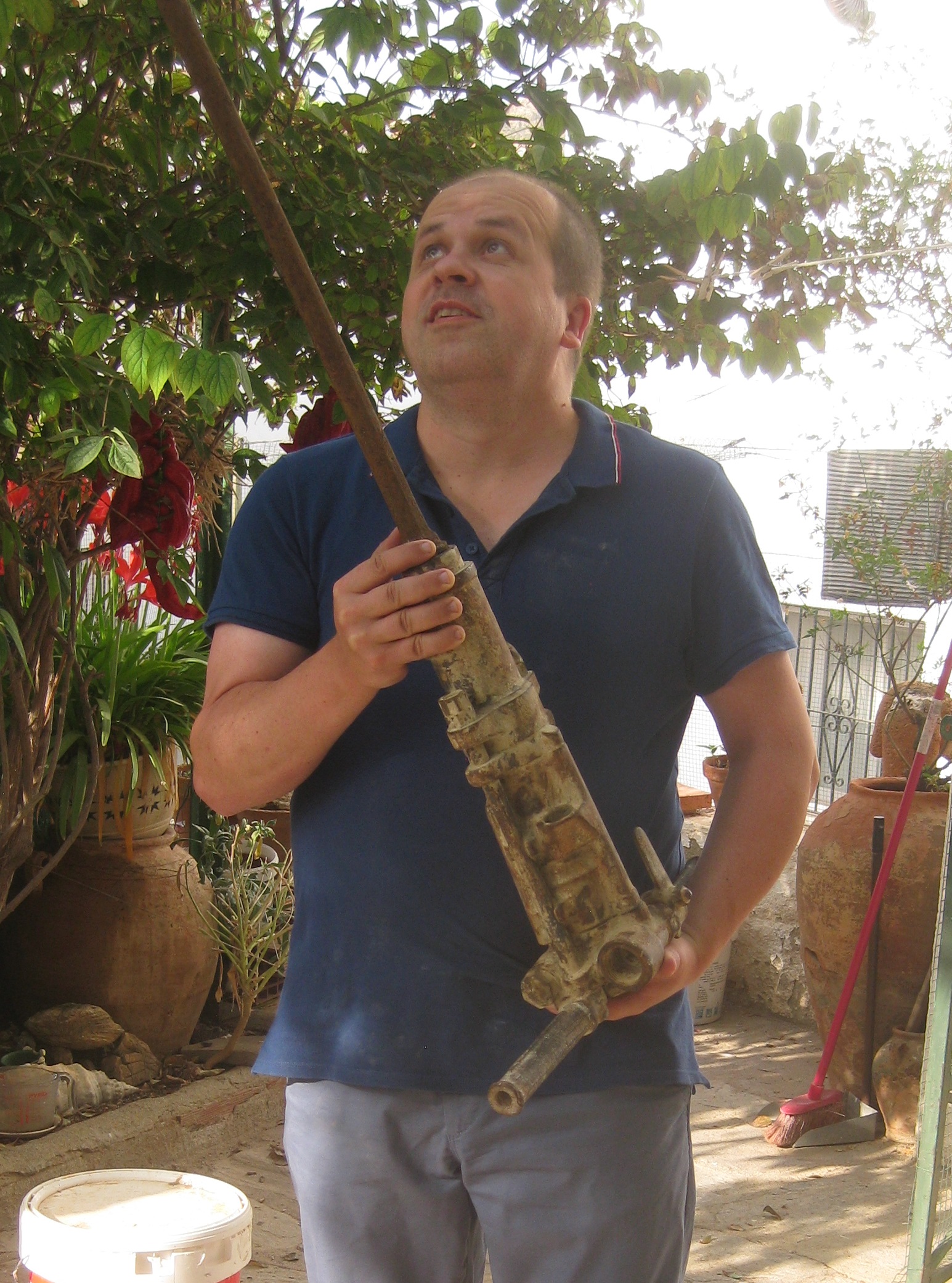 Hay pocas herramientas tan representativas del trabajo del minero como los martillos neumáticos de perforación, sin embargo, en lo que respecta a la minería en nuestra región, dar con uno se puede considerar como algo realmente excepcional. Tras el cierre de las minas, la venta de material primero y el expolio por parte de chatarreros hace que sea muy difícil encontrar cualquier resto metálico más grande que un tornillo. Pero a veces hay suerte. Ya habíamos encontrado restos realmente interesantes (barrenas, candiles, ruedas de vagonetas…) pero hoy presentamos el excepcional hallazgo de un martillo neumático (con barrena incluida). El instrumento, que puede datar de los años 1950 o 1970, se encuentra en un buen estado de conservación, hasta tal punto que, dada la simplicidad de estas herramientas y con un poco de aceite, no dudamos que pudiera ponerse en funcionamiento de nuevo.