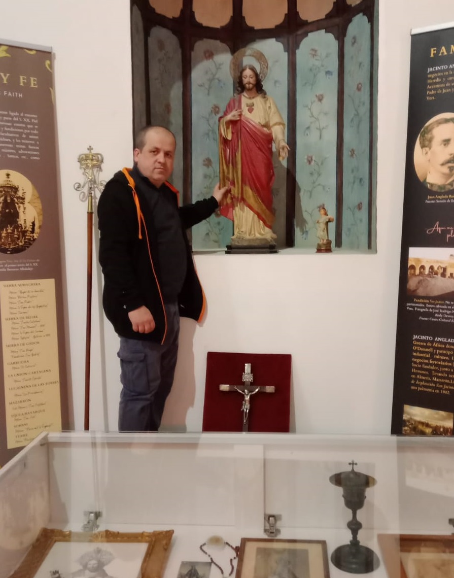 En esta exposición encontraremos dos joyas de esta antigua iglesia minera de El Pinar, un Sagrado Corazón de Jesús que se guardaba en ésta y el copón de eucaristía original de la iglesia, con una patena de un famoso orfebre francés.