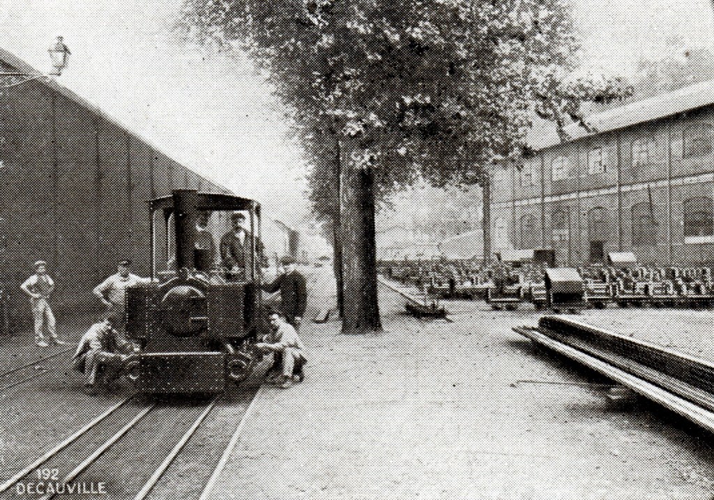 La francesa Decauville era también una de las más solicitadas, especialmente su vagonetas, plataformas giratorias y vías. En la fotografía, una curiosa fotografía de las instalaciones de la fábrica, con numerosas vagonetas y unos operarios ajustando una pequeña locomotora.