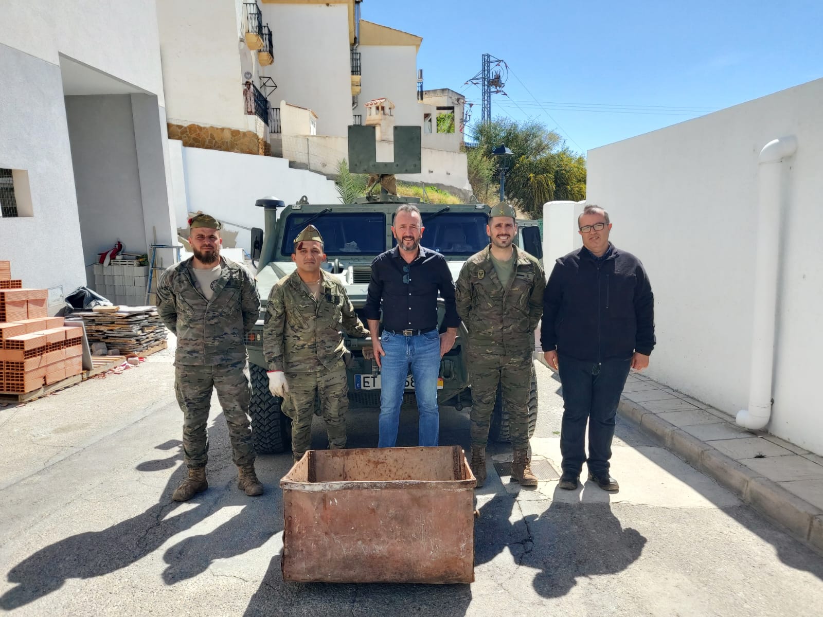 Miembros de la asociación Correcaminos de Turre, completando la restauración. Fueron también los encargados de la dura tarea de recuperar el pesado carretón y suspensor, que se encontraba en un lugar de difícil acceso en la sierra de Bédar.