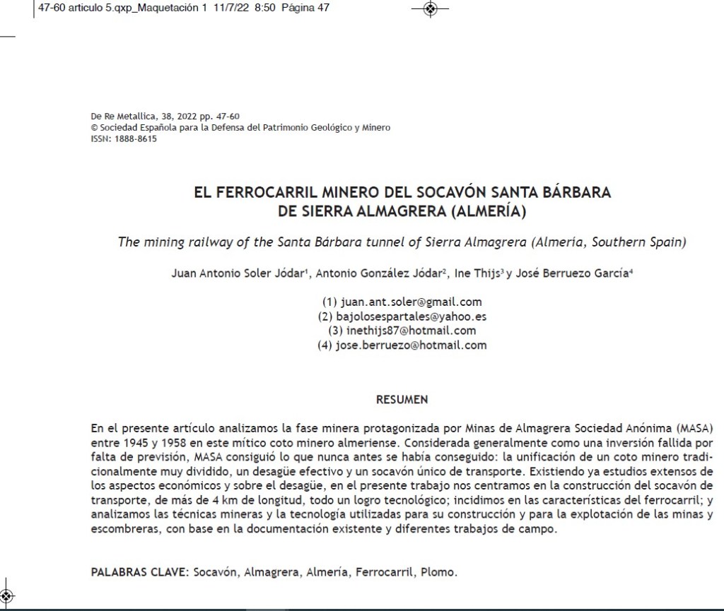 Sin duda se trata de una gran noticia que no pasó desapercibida para la prensa. En junio del año pasado, y de nuevo a iniciativa y con fondos del municipio, se realizaron las tareas de cartografía previas a la realización de un proyecto de puesta en valor y abertura al público de una de las minas más emblemáticas de Bédar, la mina Mulata.