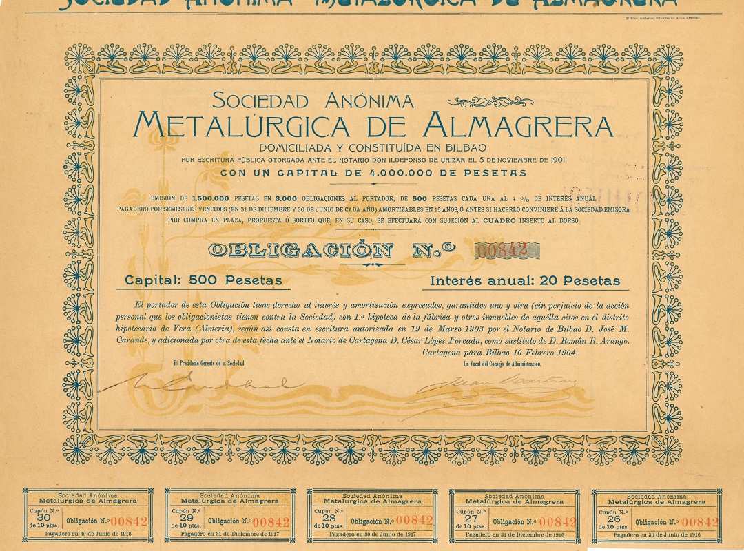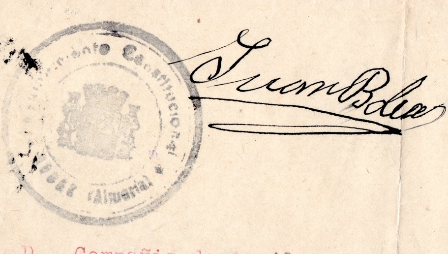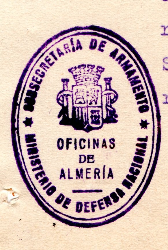 Ciertamente, la Subsecretaría de Armamento del Ministerio de Defensa Nacional de la República Española en Almería, tuvo también algo que decir. El otro sello es, como se indica, del Distrito Minero de Almería.