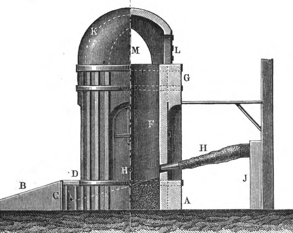 Inicialmente, las únicas mejoras en los hornos de fusión fueron las que experimentaron los sistemas de aire forzado, que pasaron de ser accionados por fuelles por medio de sufridos trabajadores a utilizar ventiladores movidos por mulas y, finalmente, eficaces máquinas de vapor.