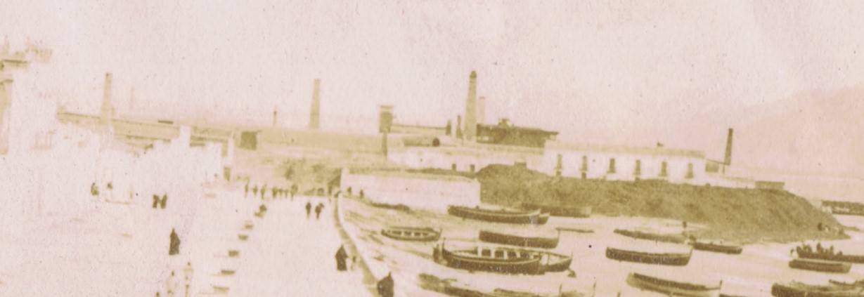 Una de las dos fotografías en las que se ve la «Chimpún» en las obras de construcción del puerto de Garrucha.