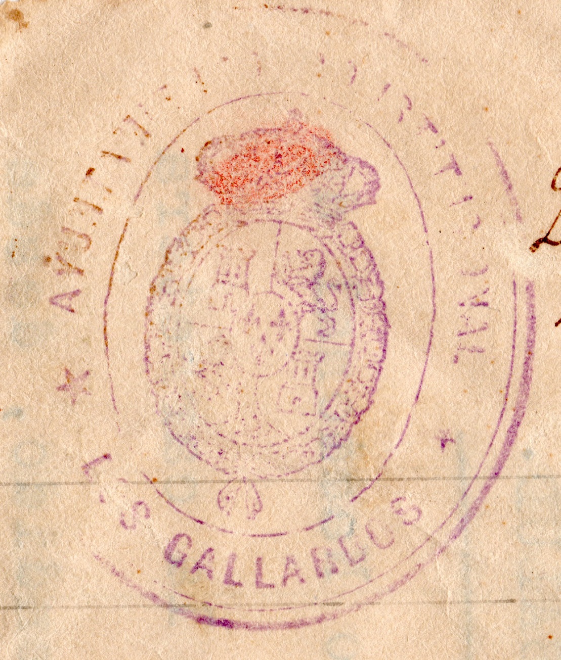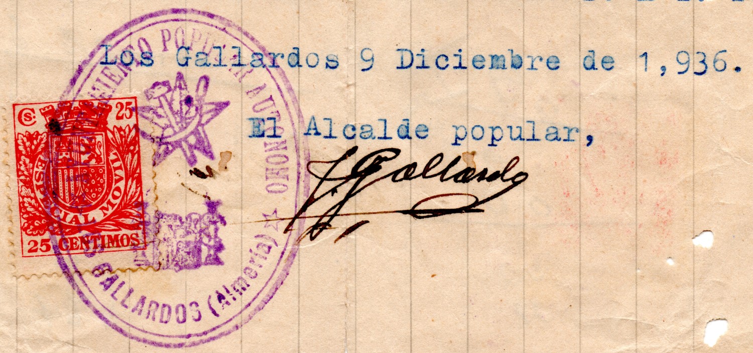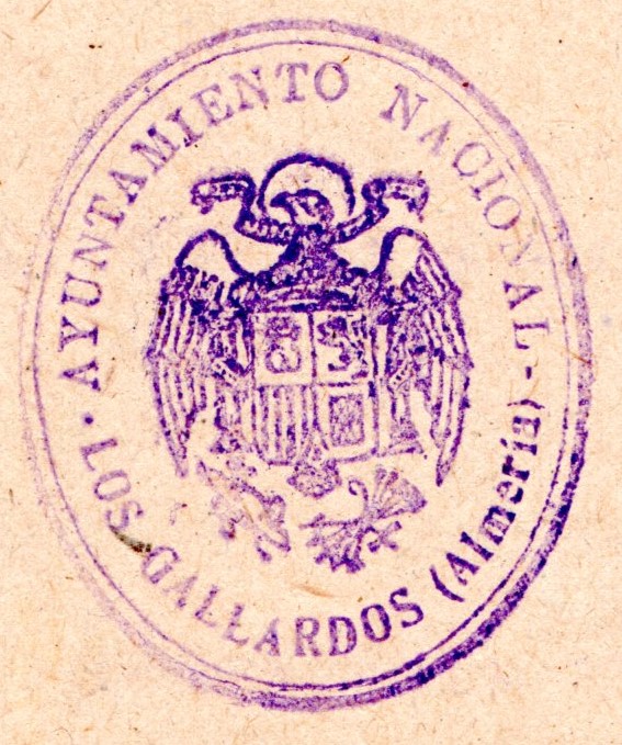 Los ayuntamientos, posteriormente Consejos Municipales, tuvieron que adaptar la simbología en sus respectivos sellos durante la guerra. La corona-castillo del sello de Bédar no daba muchos problemas, pero la monárquica del sello de Los Gallardos precisaba de un buen borrón en rojo para adaptarse a los tiempos que se vivían.