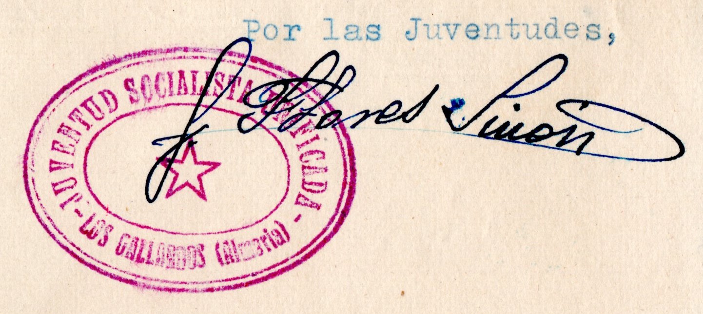 Sorprende la cantidad y variedad de sindicatos y organizaciones en Los Gallardos, y por ellos empezamos. En esta un sello de la Juventud Socialista Unificada, decorado con una simple estrella.