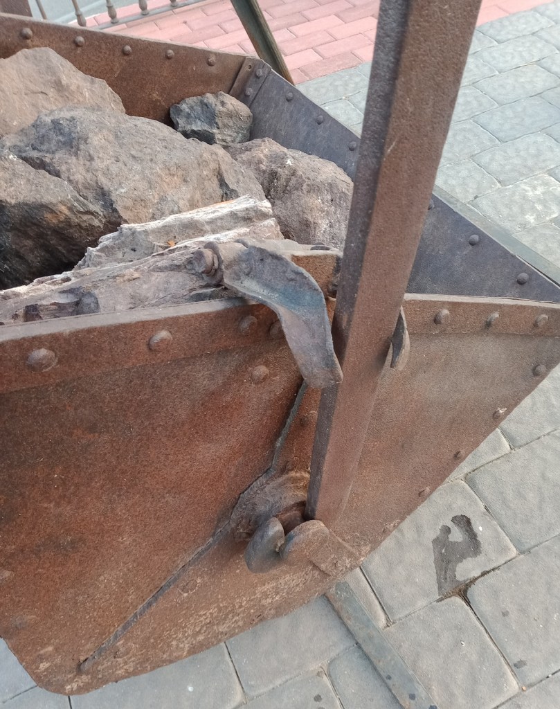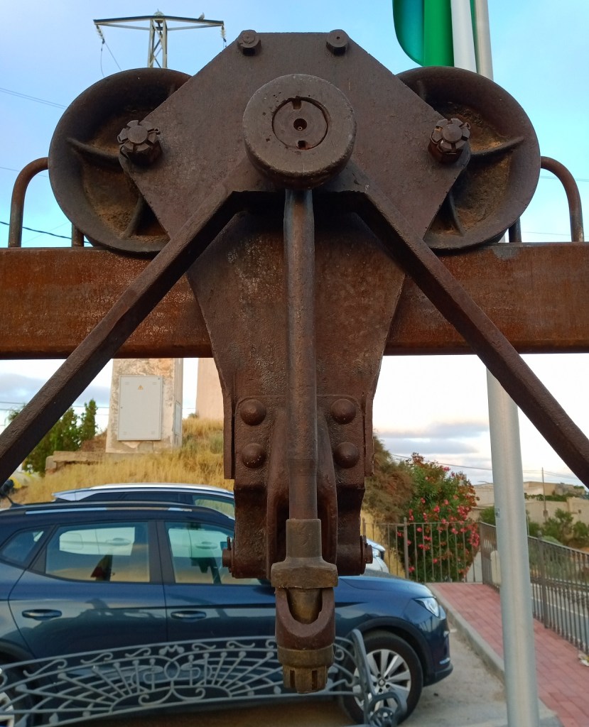 Vagoneta recuperada por la Legión del ramal de cable de la mina Carabinera en Serena (Bédar) de 1909. Este cable fue fabricado e instalado por el ingeniero Carlos Bahlsen en La Maquinista de Almería, utilizando el sistema patente Pohlig, que conocía muy bien como director que fue también del cable Bédar-Garrucha. Como detalle interesante, presenta un fondo de madera que amortiguaba la caída del mineral, evitando el deterioro del fondo de la vagoneta, un detalle de la calidad del trabajo de esta fundición de hierro almeriense.