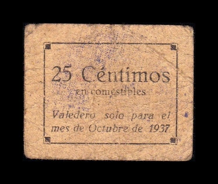 Valor de 25 céntimos de la emisión de 20 de agosto de 1937.