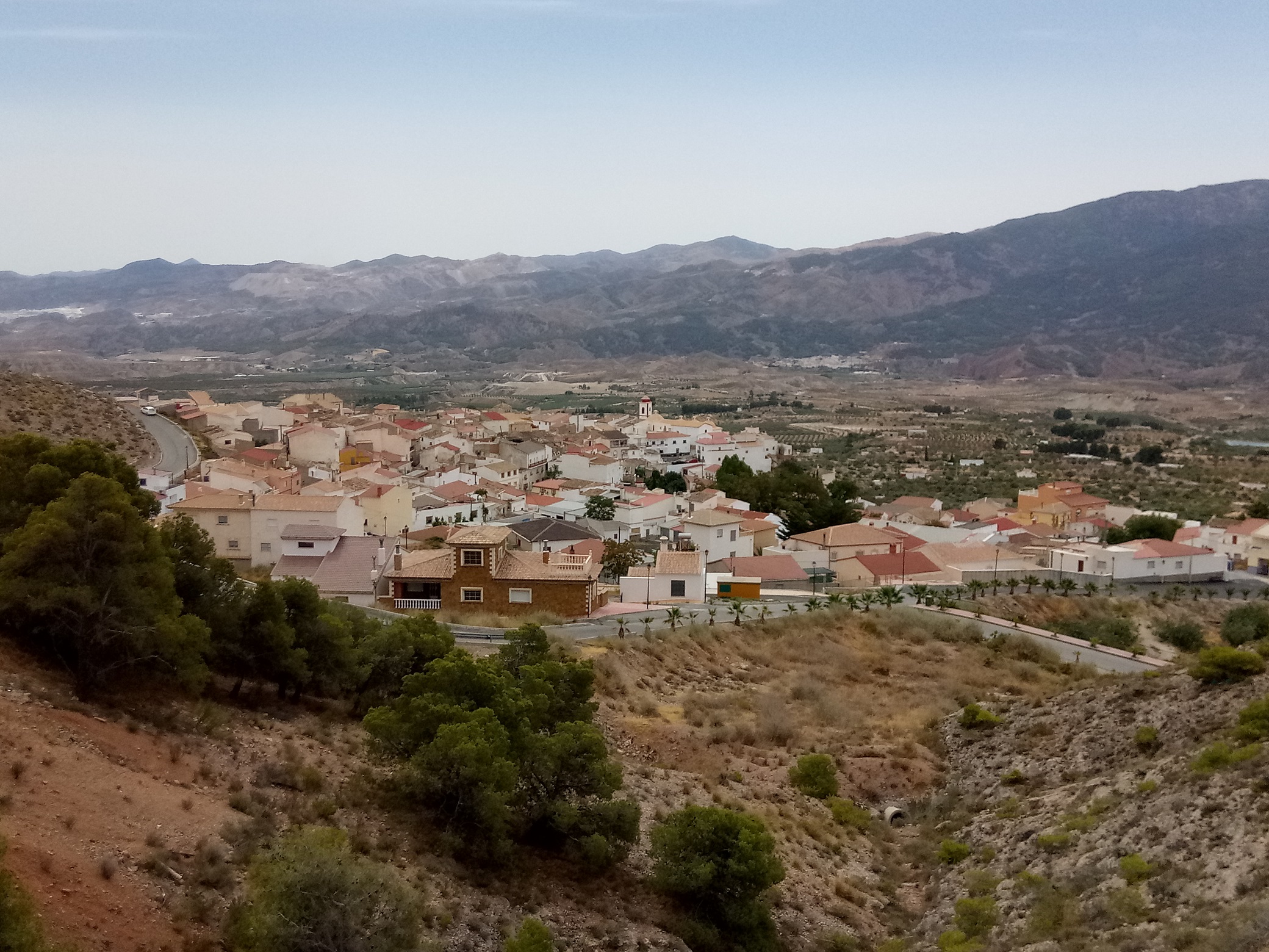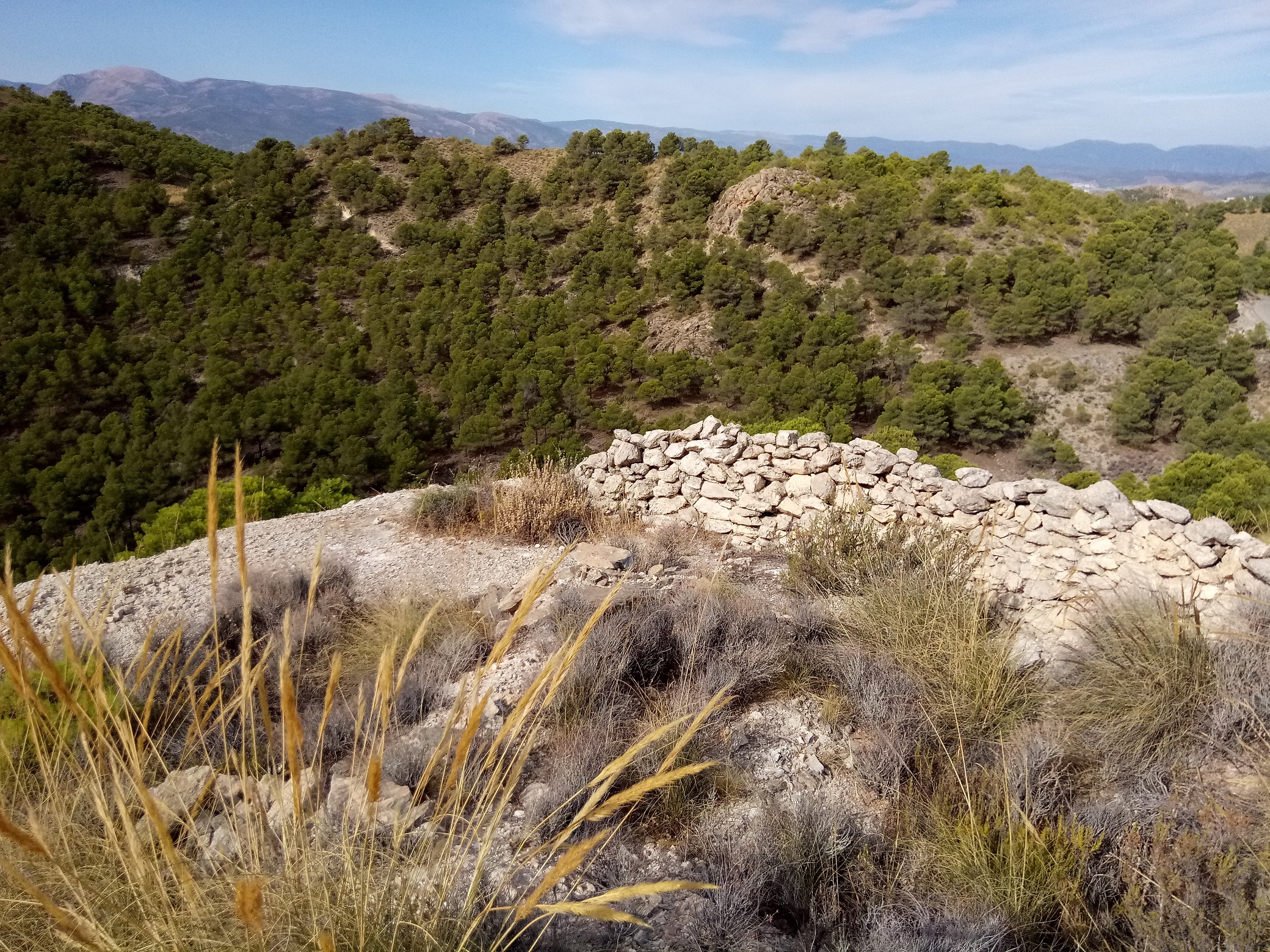 Uno de los mojones indicadores de las concesiones mineras, al fondo se observa la Tetica de Bacares.