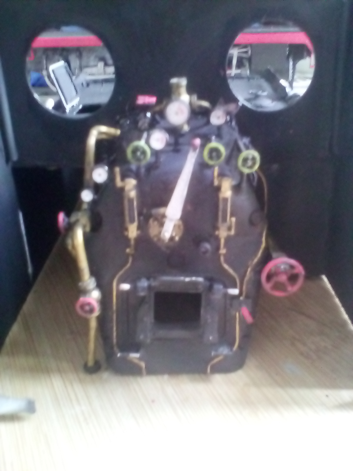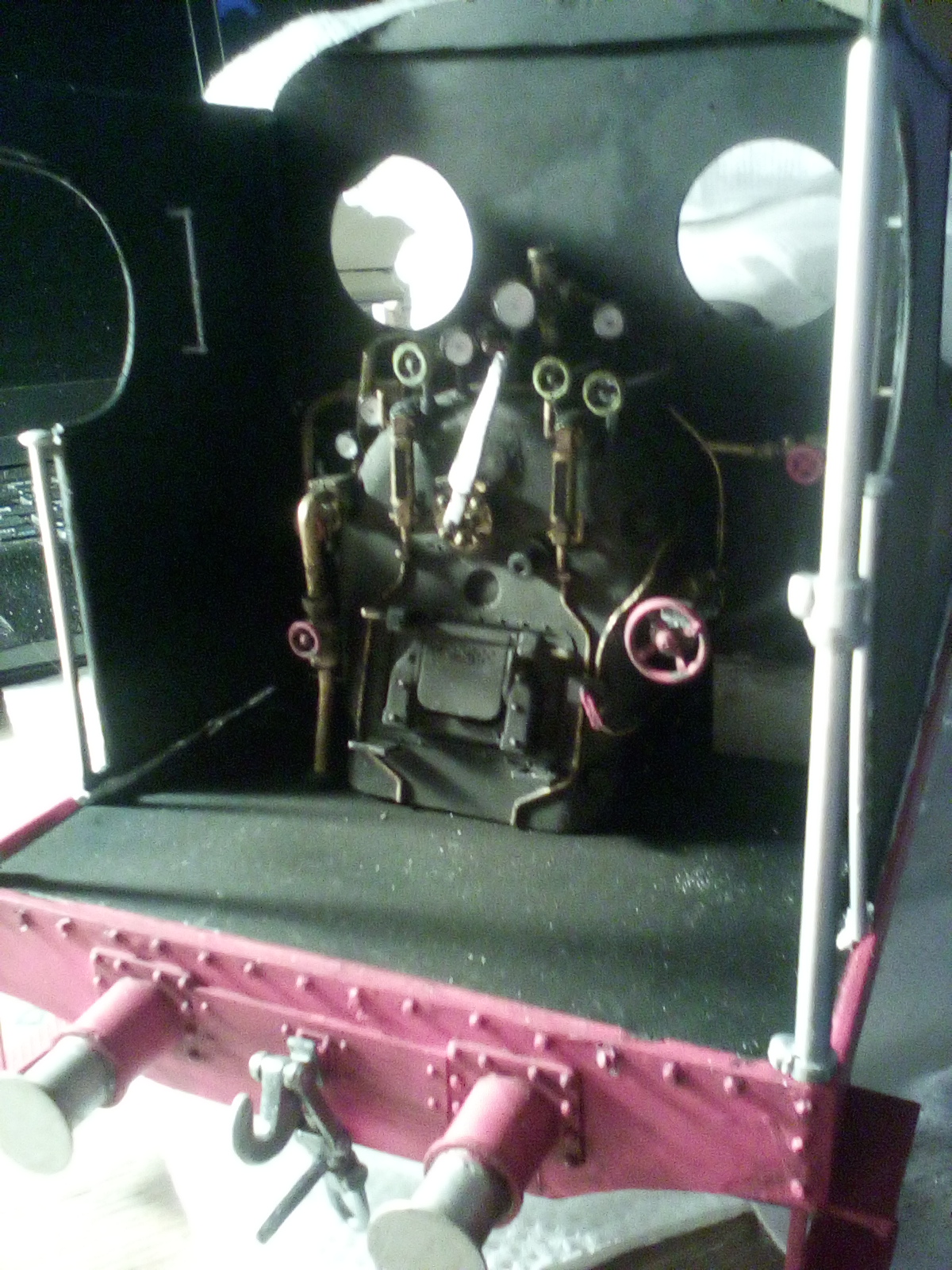 El hiperdetallado de la cabina es otro de los puntos importantes. La locomotora dispone de una cabina bastante abierta, por lo que es importante detallar bien todo el interior, lo que dará al modelo aún más realismo. Por lo tanto, no hemos reparado en detalles en el interior: manómetros, válvulas, palancas, interruptores, niveles de agua, etc. Todo ha de estar preparado y pintado antes de acoplar definitivamente la caldera al bastidor, pues una vez hecho ya no se podrá trabajar cómodamente en el interior.