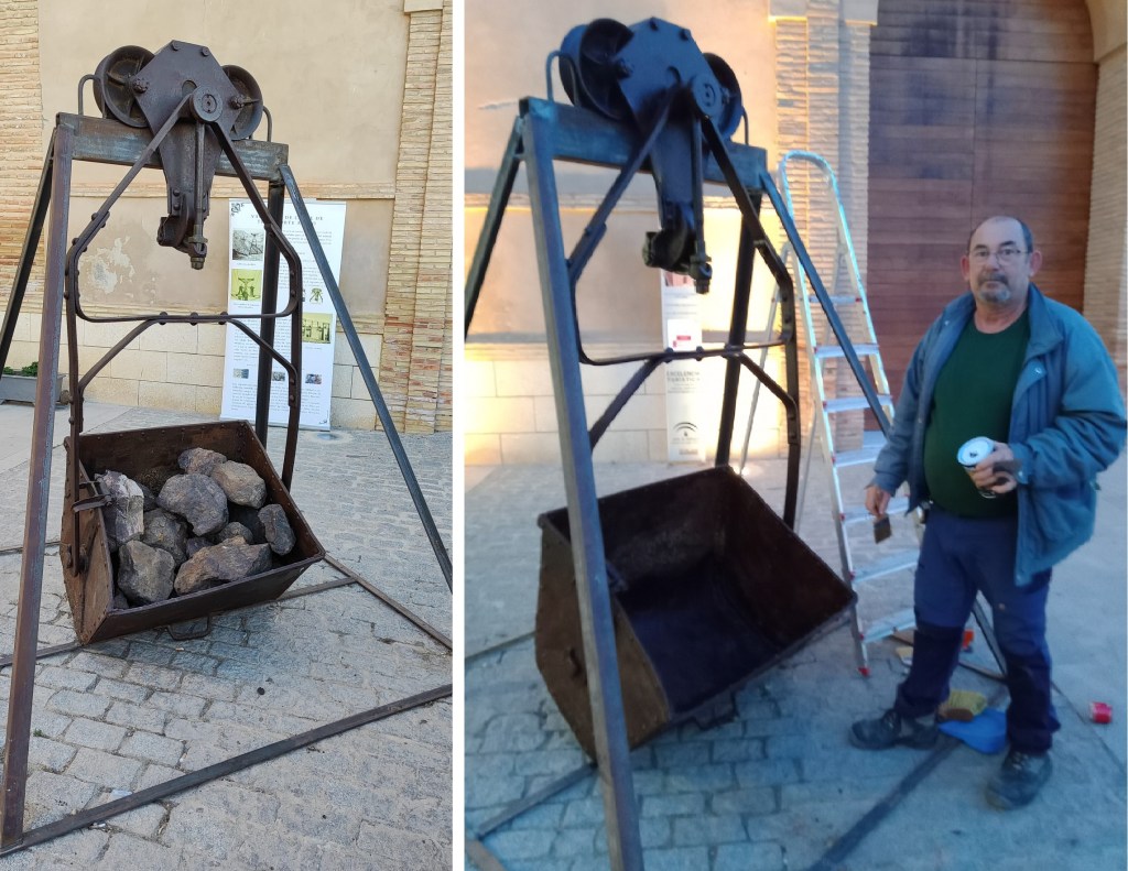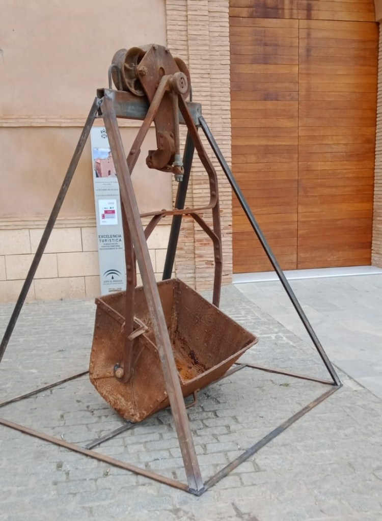 A la salida de la mina se haya una zona de escombrera con restos evidentes de machacado, así como un pequeño edificio en ruinas cuya funcionalidad desconocemos. El pozo parece un esfuerzo de explorar y acceder a un yacimiento que se asociaba claramente a esta galería, digamos, inusual.