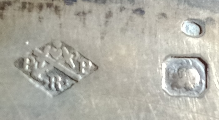 La patena presenta, ni más ni menos, que el sello de la casa del célebre orfebre francés Placide Poussielge-Rusand (1824-1889), que llegó a ser orfebre de su Santidad el Papa. Junto al sello característico del orfebre (con un ancla y una cruz cruzados, sus iniciales y un «coeur enflammé»), se encuentra una cabeza de Mineva de «premier titre», que la identifica como fabricada en plata de excelente calidad (925/1000).