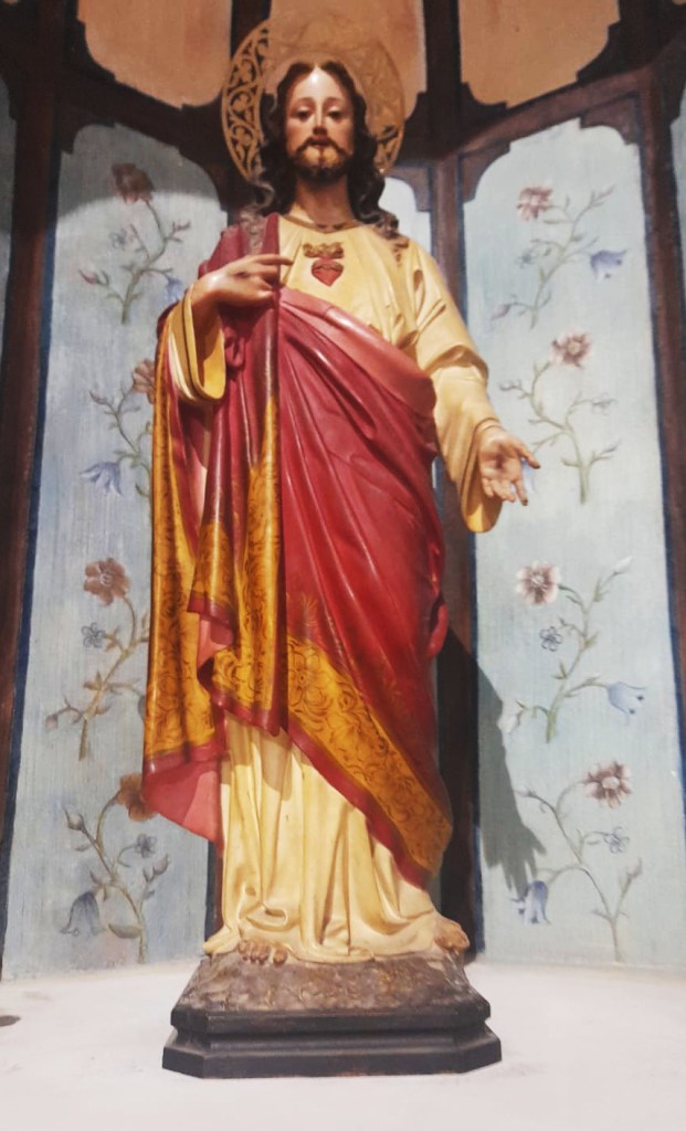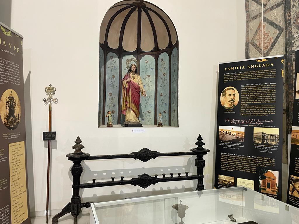A la izquierda, el Sagrado Corazón original de la iglesia de El Pinar que fue expuesto en «Luces y Sombras». A la derecha, la Virgen de Lourdes, otras de las imagenes que se salvaron de la quema y que hoy se conserva (restauradada gracias a un particular) en la iglesia de Bédar. La imagen de San Fernando se cayó del Trono durante una procesión y no pudo ser reparado por el mal estado en el que se encontraba.