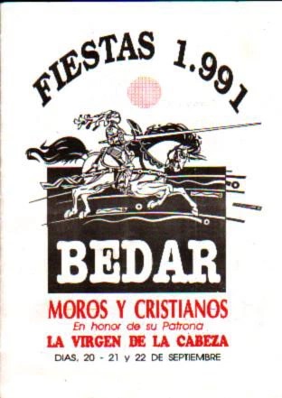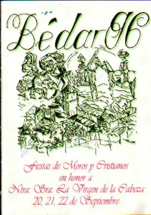 En el año 1991 y con el objetivo de preservar esta vieja tradición se publica un librito con el texto completo de los Moros y Cristianos de Bédar. Hasta entonces se guardaba, escrito a mano, en algunas libretas. Veamos ahora el texto de los Moros y Cristianos: